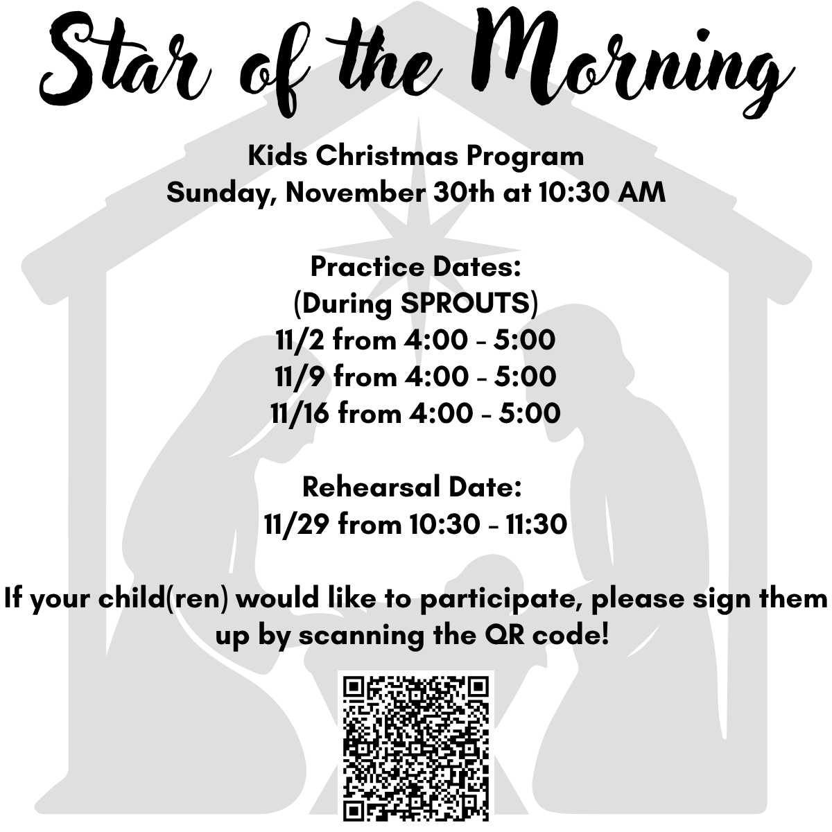 We would love for your kids to participate. Scan the QR Code to sign them up.